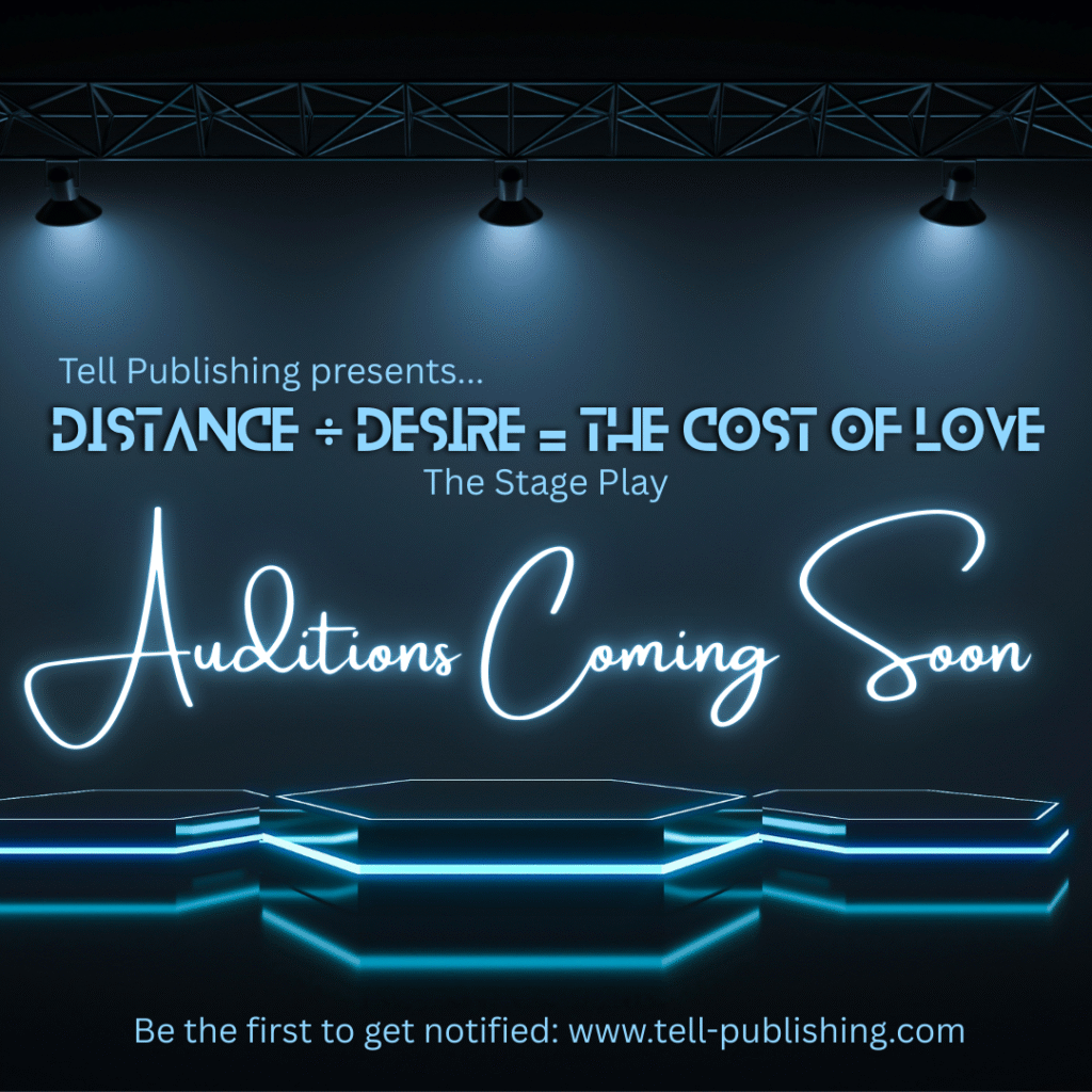 TELL PUBLISHING will be presenting its first stage play “Distance ÷ Desires = The Cost of Love” in early 2026. It is a gripping story that explores the complexities of love, faith, and the sacrifices we make for both. Our protagonist, a woman in her late twenties, finds herself in a long-distance relationship with a devoted father. United by their spiritual journey and commitment to abstinence, they support each other through life’s trials, while praying together and visiting each other monthly. However, when a well-deserved promotion takes her even further away, the distance between them grows in more ways than one. The strain begins to show in their once peaceful conversations now filled with arguments. Despite his efforts to keep their faith at the center of their relationship, she grows colder, meaner. Enter a handsome neighbor, offering compliments, attention, and protection. She finds herself intrigued, drawn to this new presence in her life. Now, she stands at a crossroads. Should she stay with her man, who, despite his financial stagnation, has been her rock? Or should she give in to the allure of the neighbor who offers her a different kind of security? The cost of love has never been so high, and the choice she makes could change everything.
